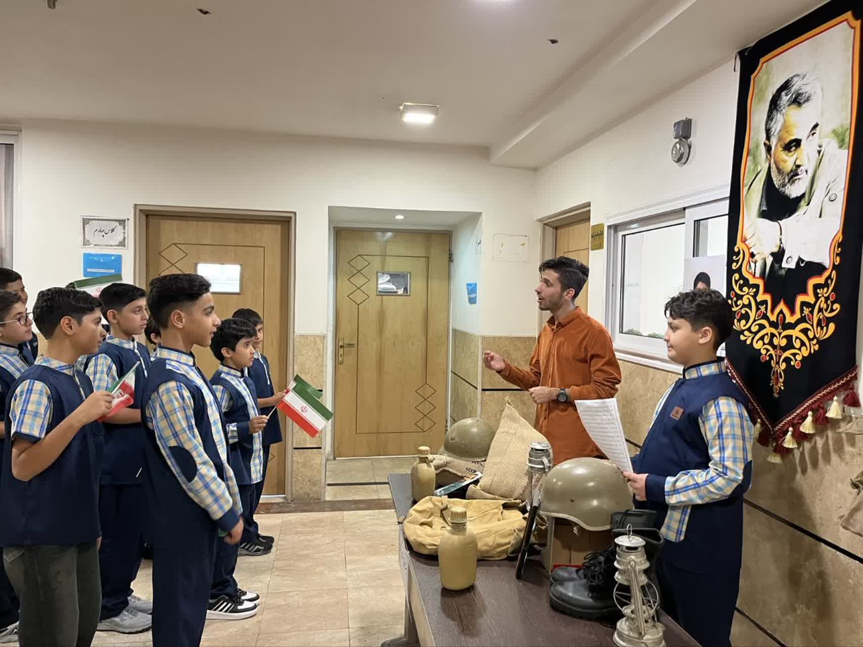 گرامیداشت و برپایی هفته دفاع مقدس به همراه روایت گری با موضوع شهید مجتبی شریفی (شهید دانش آموز جنگ ۱۲ روزه)توسط دانش آموز امیر حسین خلیلی